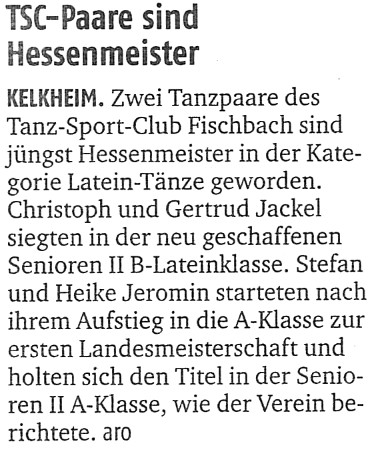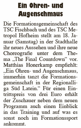 Artikel vom 21.02.2014 "Lateintänzer begeistern in Fischbach"