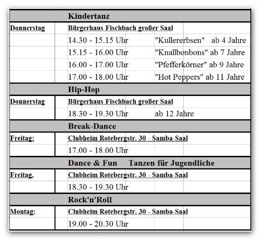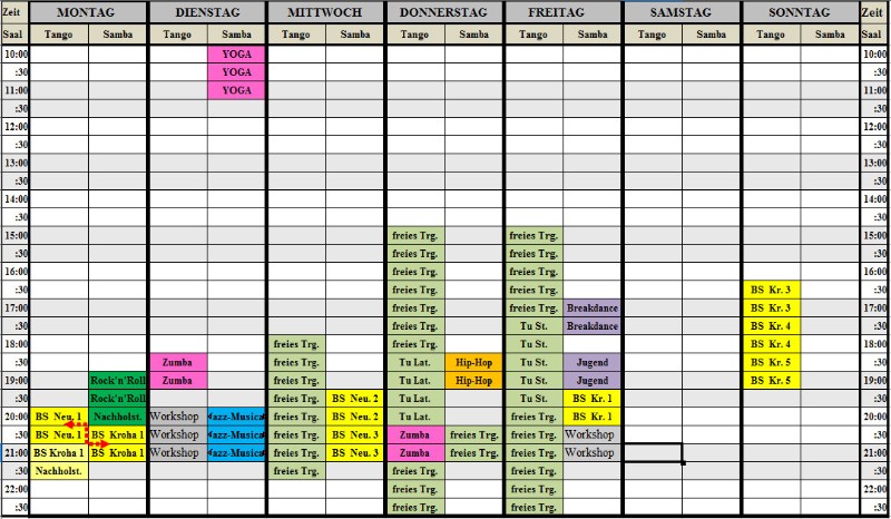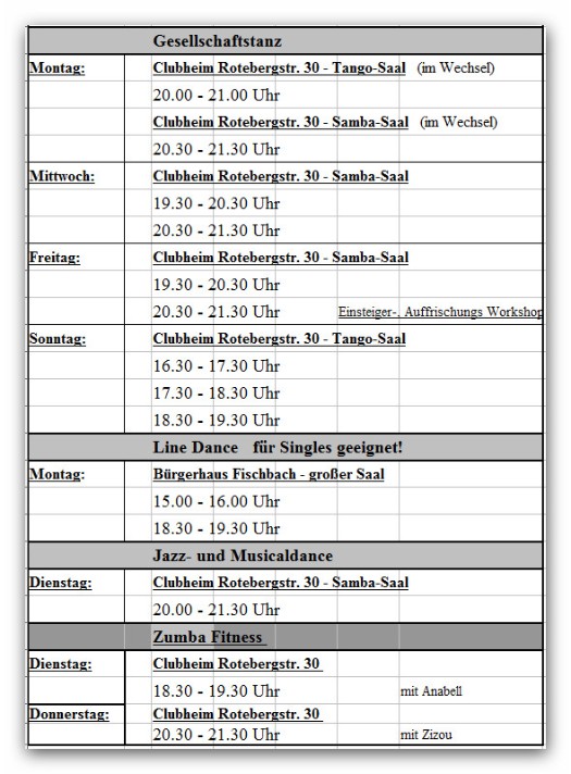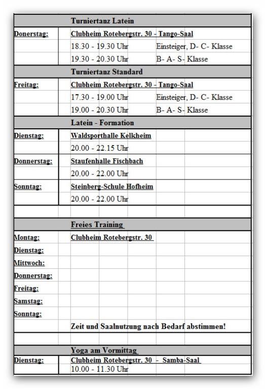 Belegungsplan Clubheim und Trainingsplan
